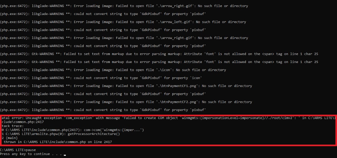2. Download the "rundebugs.bat" file and insert it into the ARMS LITE Folder. Once placed, run the file and view the produced output. Take note if there are any error messages containing the term "winmgmts". If yes, proceed with the WMI Repair / Reconnect after reverting the changes made in Step #1.